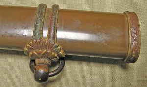 Mountings: 1934 Pattern shin-gunto mounts of good quality (sukashi tsuba and gold washed habaki), the wear and tear of combat shows but everything matches and is in good shape.