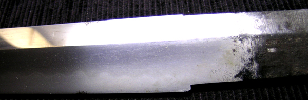 Overall Condition: Good. Long blade with light pitting, polisher's mei on shinogi-ji, indicates it was probably a good sword. Should polish very nicely.